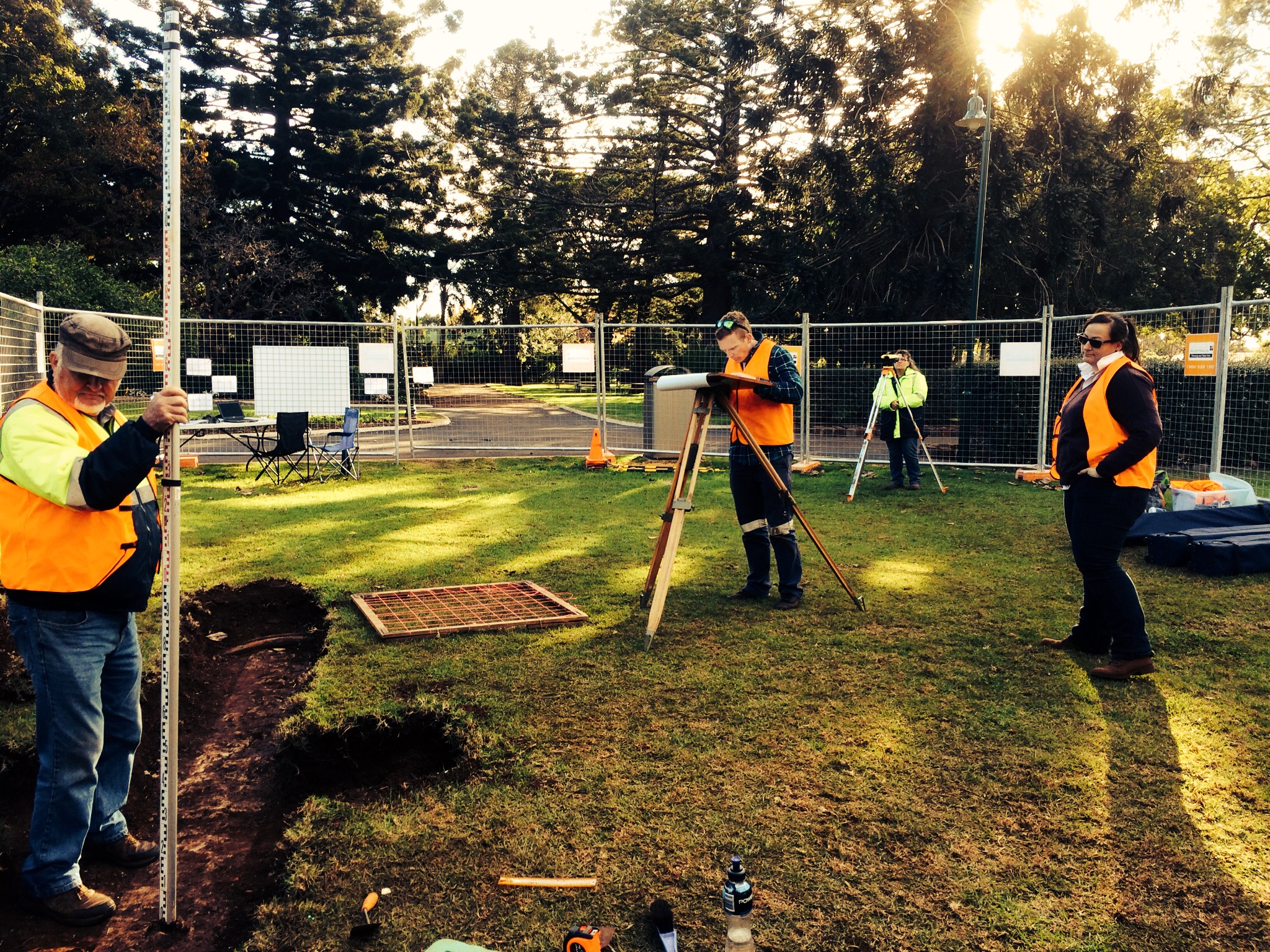 Mapping and section drawing were the order of the day, and these practical skills were taken up with ease by our students. Tying the site into other, relatively permanent landscape features enables us, or any future archaeologists to come back and relocate the site to do further work if needed; or to revisit the conservatory, if technology becomes so amazing that questions otherwise unanswerable, become answerable. Site protection is another important reason to map, and so all the features of the conservatory were documented as part of the map-making process.